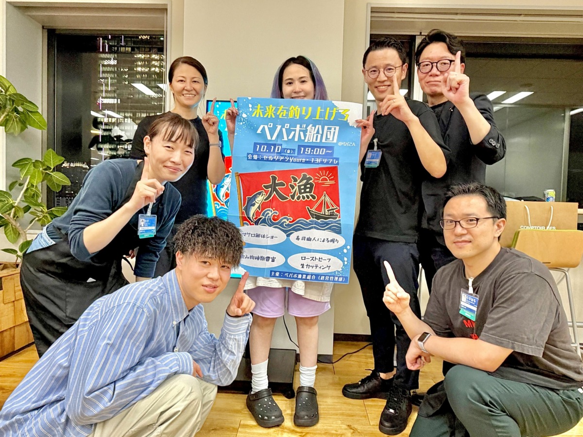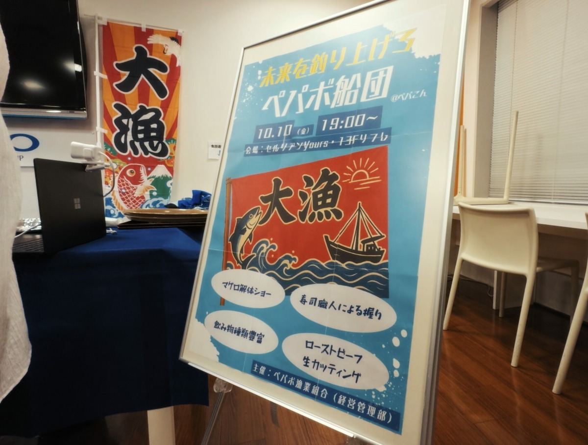 毎回、季節やテーマに沿った装飾と、こだわりの食事を提供し、多くのパートナーが参加する活気あふれるイベントとなっています。 今回の東京会場のテーマは「未来を釣り上げろ ペパボ船団」。